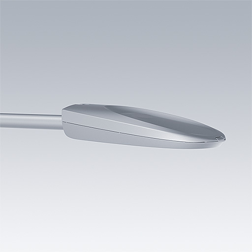 Lanterne esthétique à la pointe de la technologie pour l'éclairage urbain et routier avec 24LED alimentées en 700mA et optique Route étroite. Electronique, non gradable. Classe électrique II, IP66, Résistance aux impacts : IK08. Corps : Moulage sous pression aluminium (EN AC-44300), Gris pâle (150) - partiellement peint. Verre : verre trempé (4 mm) offrant une transmission de la lumière > 90%. Fixations : acier inoxydable avec traitement anti-galvanique. Fixation latérale D 60 mm, 0° inclinaison. Livré avec LED 3 000 K.