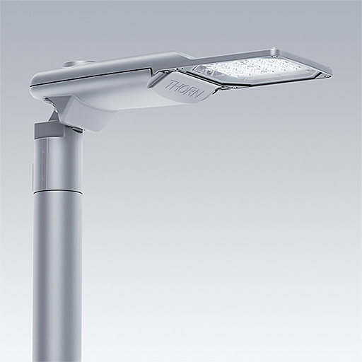 Eine hochmoderne LED-Straßenleuchte (Mini) mit 12 LEDs, betrieben mit 350mA. Optik: Schmale Straße. Programmierbarer LED-Treiber. Schutzklasse II, IP66, IK09. Gehäuse: Druckguss aus Aluminium (EN AC-44300), hellgrau 150 (ähnlich RAL 9006) pulverbeschichtet, texturiert. Mastadapter: Druckguss aus Aluminium (EN AC-44300), unlackiert. Abdeckung: Glas, 5 mm dick. Befestigungen: Federstahl. Lieferung mit Mastadapter (Ø 60 mm), der zur Mastaufsatzmontage (0°/5°/10°/15°/20° Neigung) oder Mastansatzmontage (-15°/-10°/-5°/0°/5°/10°/15° Neigung) verwendet werden kann. Ausgestattet mit 50% Leistungsreduktionsschaltung, aktiviert 3 Std. vor und 5 Std. nach einer berechneten Mitternacht. Inklusive LED-Modul mit 4000K. Überspannungsschutz: 10 kV Einzelimpuls Gleichtakt und 8 kV Multipuls Gleichtakt und 6 kV Multipuls Differentialtakt. Falls permanent ein DALI-System angeschlossen ist: 6 kV Multipuls Gleich- und Differentialtakt.