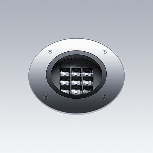 Cesar Opera, drive over montage encastré dans le sol, luminaire architectural à LED pour l'éclairage décoratif des façades, avec et distribution faisceau intensif.. gradable DALI-2 Driver. Classe électrique I, IP67, Résistance aux impacts : IK10. Boîtier : Moulage sous pression aluminium, sans peinture. Température de service de Température ambiante : -20°C à +45°C. Livré avec LED 4 000 K.