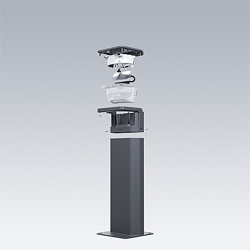 L’accès à l'intérieur de la borne se fait après avoir desserré les deux vis Allen inviolables et retiré la tête du luminaire.