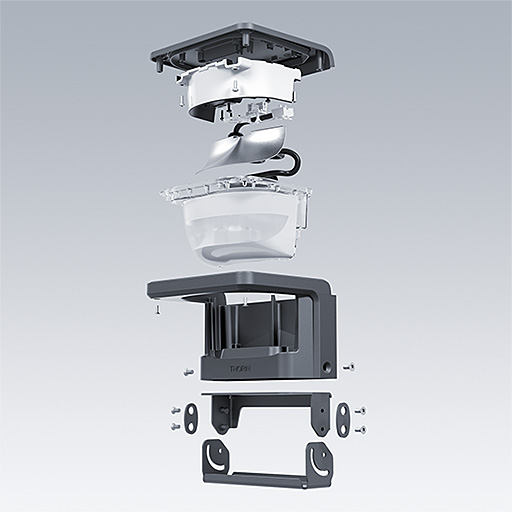 - Support de montage et support en arche inviolable : aluminium (épaisseur 3 mm)