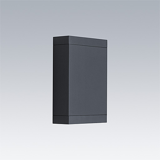 Axyl Glow fixation murale, luminaire architectural à LED pour l'éclairage décoratif des façades, avec 2 échancrures et distribution. Classe électrique II.. Flux fixe Driver. IP65, Résistance aux impacts : IK06. Boîtier : aluminium Moulage sous pression, thermopoudré texturé anthracite. Température de service de Température ambiante : -20°C à +40°C. Livré avec LED 4 000 K..