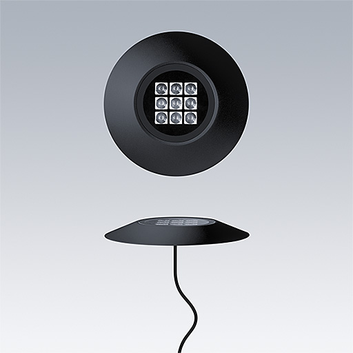 Cesar Bow plafonnier, luminaire à LED pour l'éclairage décoratif des façades, avec et distribution asymétrique. Classe électrique III. Convertisseur à distance DALI2. IP67, Résistance aux impacts : IK09. Boîtier : aluminium Moulage sous pression, thermopoudré texturé noir. Température de service de Température ambiante : -20°C à +40°C. Livré avec LED 2 700 K.