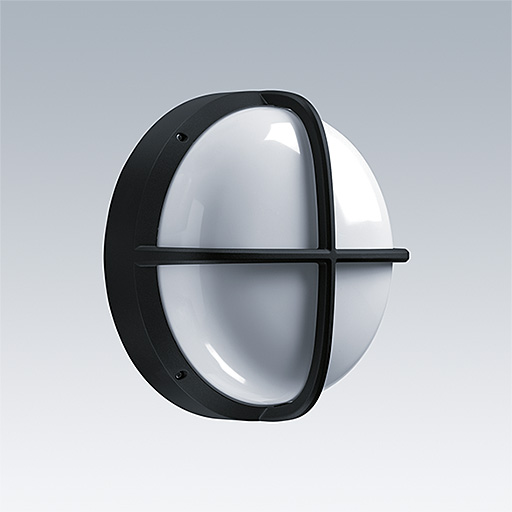 Hublot LED ronds et résistants aux impacts. Electronique, non gradable. Classe électrique I, IP65, IK10. Corps : taille Small, aluminium Moulage sous pression (LM6), anthracite thermopoudré. Diffuseur : Polycarbonate (PC) opale avec croix aluminium Moulage sous pression. Connexion électrique par bornier 3 P 2 x 2,5 mm². Livré avec LED 3 000 K