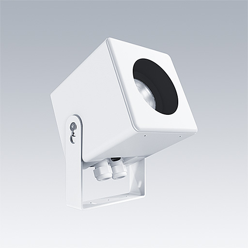 Projecteurs orientables apparents Caelon S pour l'éclairage de façades architecturales, de détails, de niches et de structures. Classe électrique I, IP66 avec. Équipés du convertisseur Sortie fixe. Corps : aluminium Moulage sous pression blanc. Vis en acier inoxydable. Température ambiante : -20°C à +25°C. Livré avec LED 3 000 K.