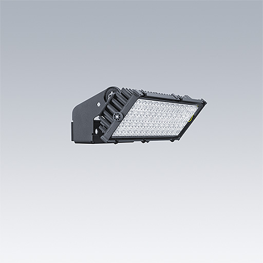 Projecteur LED haute puissance avec distribution lumineuse Optique 1 : asymétrique 60°; de 144 LED. Appareillage externe, Fourni uniquement par Thorn Lighting, à commander séparément (courant de transmission maximum 700 mA) et câblage via câble de type H07 RN-F et mini-diamètre de 13 mm. Classe électrique I, IP66, IK08. Dissipateur thermique : Moulage sous pression aluminium thermopoudré gris foncé (similaire à RAL 7043). Support de fixation et cadre : gris foncé (similaire à RAL 7043). Fermeture : 4 mm transparent verre. Fourche montée à l’aide des points de fixation disponibles (une vis M20 et deux vis M14). Fonctionnement à faibles papillotements (< 1 %) adapté à une diffusion TV haute définition. Livré avec LED 4 000 K