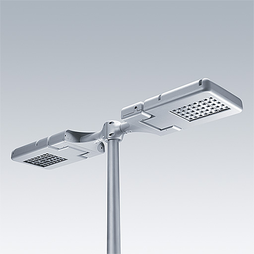 Accessoire pour montage top double pour mâts à rotule de 60 ou 76 mm. Livré avec adaptateur(s) de luminaire Olsys 1. En aluminium, thermopoudré proche RAL9006.