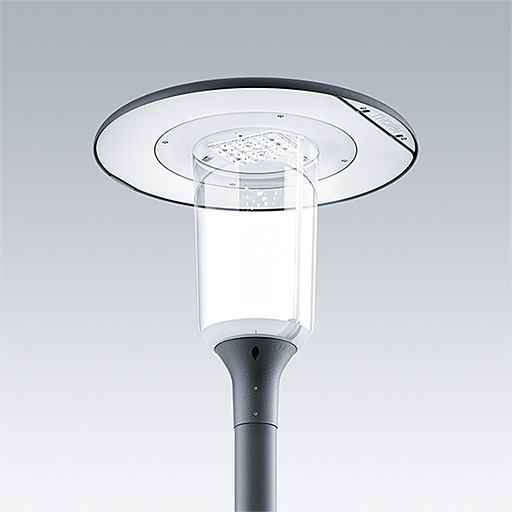 Lanterne LED discrète, à montage top, avec une conception intemporelle. Driver pour 24 LED, entraînés à 500mA avec une distribution Confort pour rue large (asymétrique). Classe électrique I, IP66, IK10. Capot et socle : aluminium Moulage sous pression thermopoudré résistant à la corrosion et adapté aux environnements C5, finition texturé gris anthracite 900 sablé. Boîtier : Polycarbonate (PC) faible épaisseur anti-UV avec finition transparent. Livré avec LED 4 000 K. Montage top sur mât de Ø 76mm. Pré-câblé avec 5 m de câble.