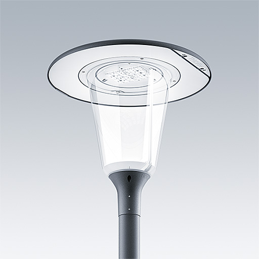 Lanterne LED discrète, à montage top, avec une conception intemporelle. Driver pour 12 LED, entraînés à 350mA avec une distribution Confort pour rue large (asymétrique). Classe électrique II, IP66, IK10. Capot et socle : aluminium Moulage sous pression thermopoudré résistant à la corrosion et adapté aux environnements C5, finition texturé gris anthracite 900 sablé. Boîtier : Polycarbonate (PC) large anti-UV avec finition transparent. Livré avec LED 4 000 K. Montage top sur mât de Ø 60mm. Pré-câblé avec 5 m de câble.