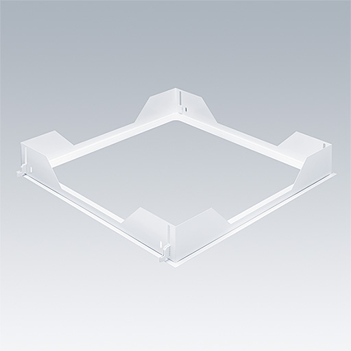 Cadre encastré pour fixation d’un luminaire Omega Pro 2 de 1197 x 297 mm dans un plafond en plâtre d’une épaisseur de 12-50 mm. Le kit consiste en une structure en tôle et des cales de hauteur réglable qui s’adaptent aux différentes épaisseurs de plafond. Pour installer le produit (y compris CKIT) dans le cadre en tout confort et sans endommager l’optique, il est recommandé d’avoir un plénum de 200 mm et une bordure de 150 mm autour de la découpe.