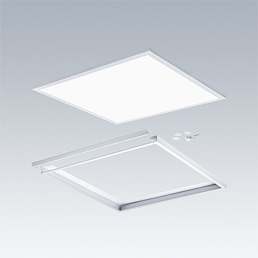 Luminaire LED encastré/plafonnier/suspension. Driver, gradable DALI-2 avec fonction d’éclairage de sécurité de 3 heures et autotest / test adressable DALI. Classe électrique II, IP20, Résistance aux impacts : IK03. Corps : tôle d'acier, blanc (similaire à RAL9016). Diffuseur : Polycarbonate (PC) anti-UV. Optique microprismatique pour un espacement maximisé. Connexion électrique via borniers à poussoirs, avec repiquage possible.