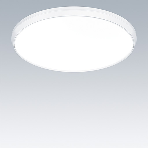 Luminaire circulaire décoratif avec corps Large. Composant indirect bas pour éclairage du mur et du plafond. Électronique, gradable DALI avec fonction d’éclairage de sécurité de 3 heures et autotest / test adressable DALI. Garniture esthétique du luminaire en Polycarbonate (PC) blanc. Diffuseur : opale Polycarbonate (PC). Classe électrique II, IP54. Livré avec LED 4 000 K.
