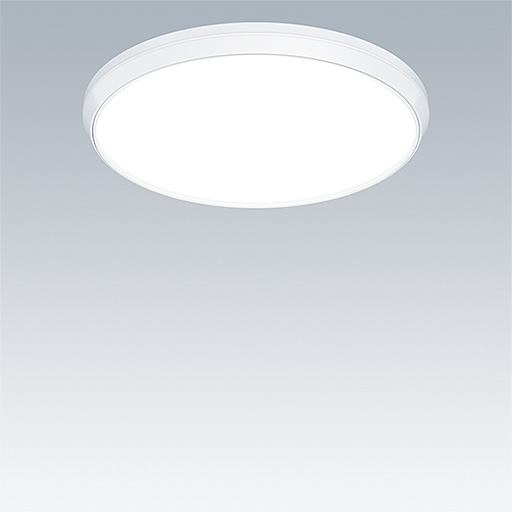 Luminaire circulaire décoratif avec corps Medium. Composant indirect bas pour éclairage du mur et du plafond. Electronique, non gradable. Garniture esthétique du luminaire en Polycarbonate (PC) blanc. Diffuseur : opale Polycarbonate (PC). Classe électrique II, IP54. Livré avec LED 4 000 K.