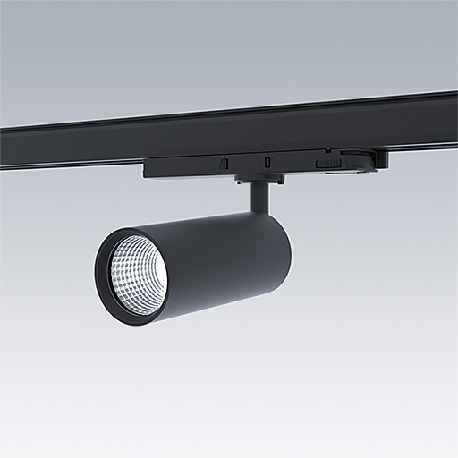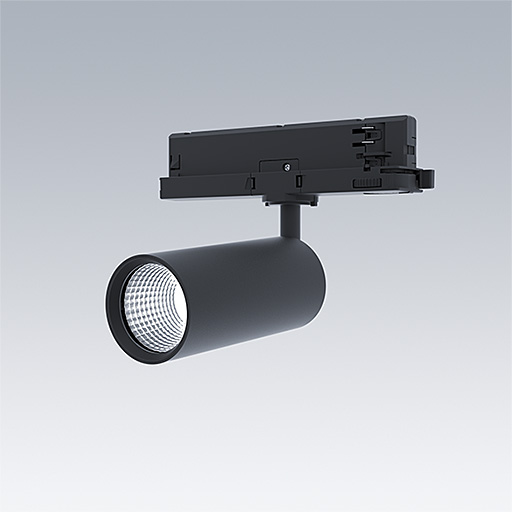 Projecteur LED pour installation sur rail triphasé avec distribution lumineuse de type projection et température de couleur stabilisée. Electronique, non gradable. Classe électrique II, IP20. Corps : aluminium Moulage sous pression, peinture microtexturée noir. Réflecteur : PC poudré. Projecteur orientable sur le plan horizontal de 360° et inclinable sur le plan vertical de 90°. Livré avec LED 4 000 K