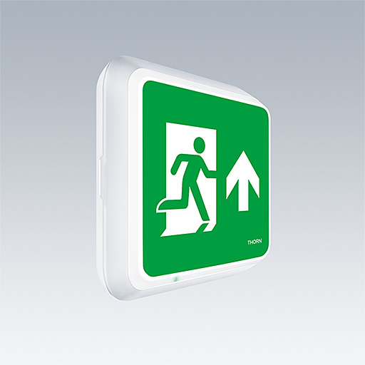 Luminaire à panneau de sécurité LED carré, plafonnier. Luminaire pour alimentation centralisée de l'éclairage de sécurité pour une surveillance individuelle du luminaire par Powerline couplé avec le système eBox, niveau d'intensité réglable. Interface NFC pour l’adressage, la configuration et la maintenance via PROset Pen (article : 22170290) ou PROset app., adressage également possible autrement visuellement ou via l’adressage EZ. Alimentation : 220-240 Vca (± 10%), 50/60 Hz ; 176-280 Vcc. Corps : Polycarbonate (PC) moulé par injection, blanc (RAL 9016). Diffuseur : Polycarbonate (PC) opale, avec pictogramme flèche directionnelle (haut) de sortie de secours imprimé et collé, conformément à ISO 7010. Rétro-éclairage uniforme du pictogramme, luminance > 500 cd/m² dans la partie blanche et 200 cd / m² en moyenne dans la partie secteur (conformément à DIN 4844), 2 cd / m² minimum en mode de secours (conformément à EN 1838). Distance de reconnaissance conforme à EN 1838 : 44 m. Classe électrique II, IP65, Résistance aux impacts : IK10. Température ambiante : -30°C à +35°C. Convient pour fixation directe au mur. Câblage à piquage/repiquage possible pour les câbles de jusqu’à 2,5 mm². Compatibilité BESA. Certificat alimentaire (à utiliser dans les zones avec des aliments entièrement emballés). Luminaire câblé avec des fils sans halogène et sans silicone. Luminaire avec symbole D (pour utilisation dans les environnements où l’accumulation de poussière conductrice sur le luminaire peut être attendue).